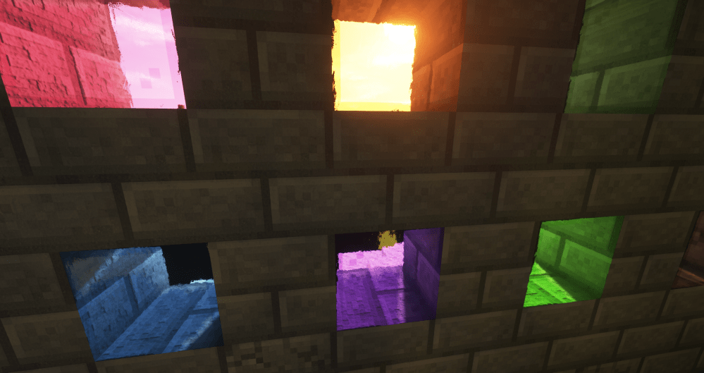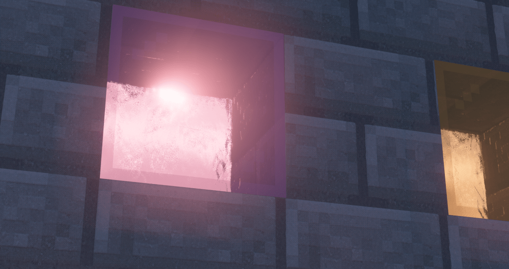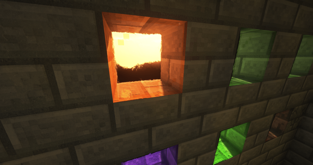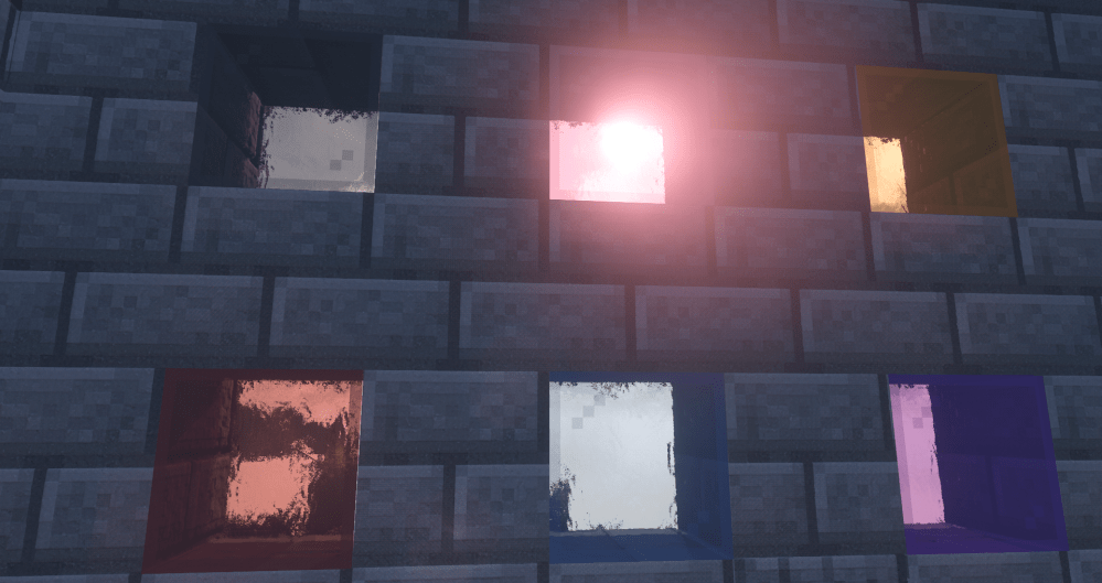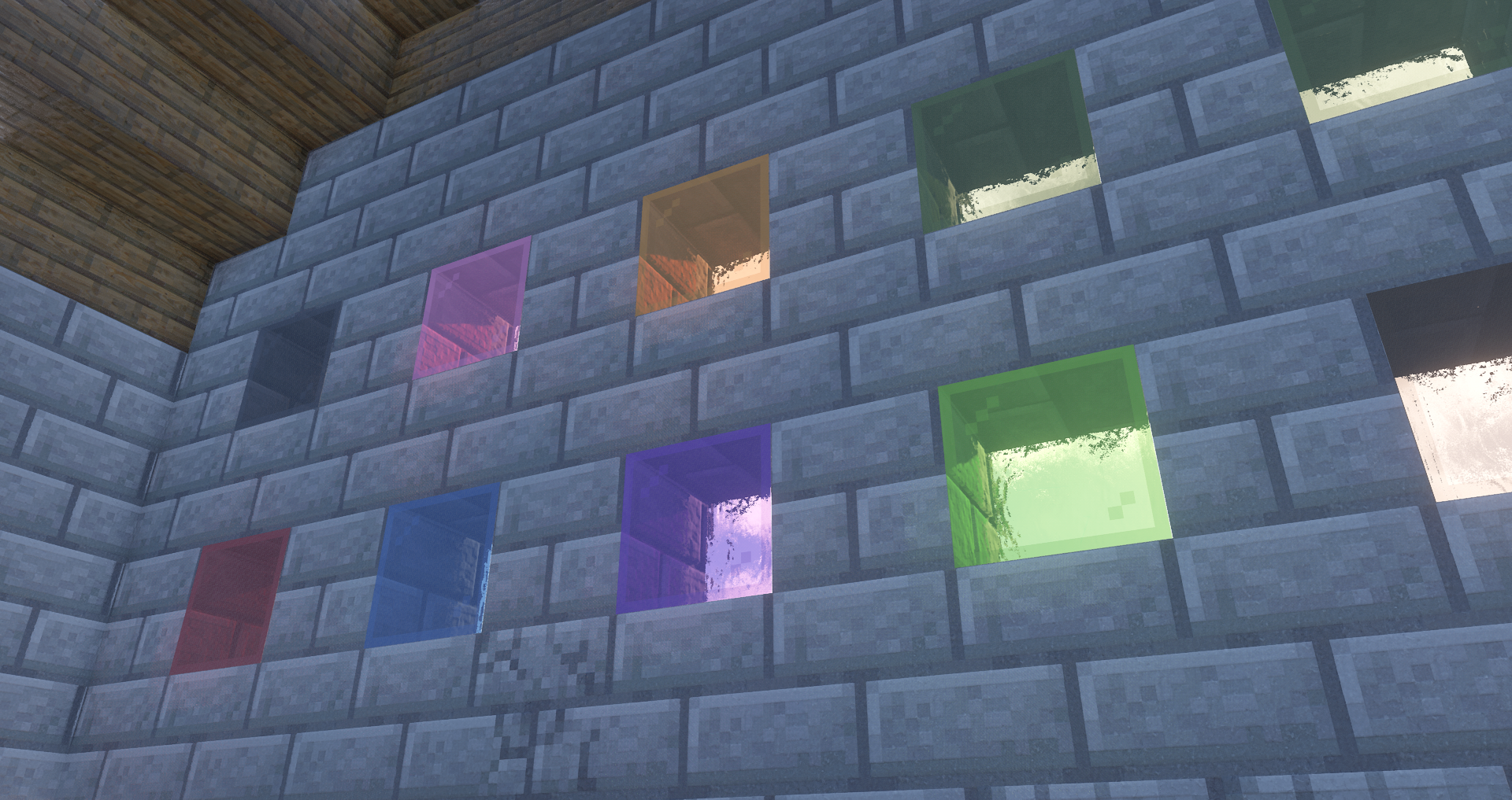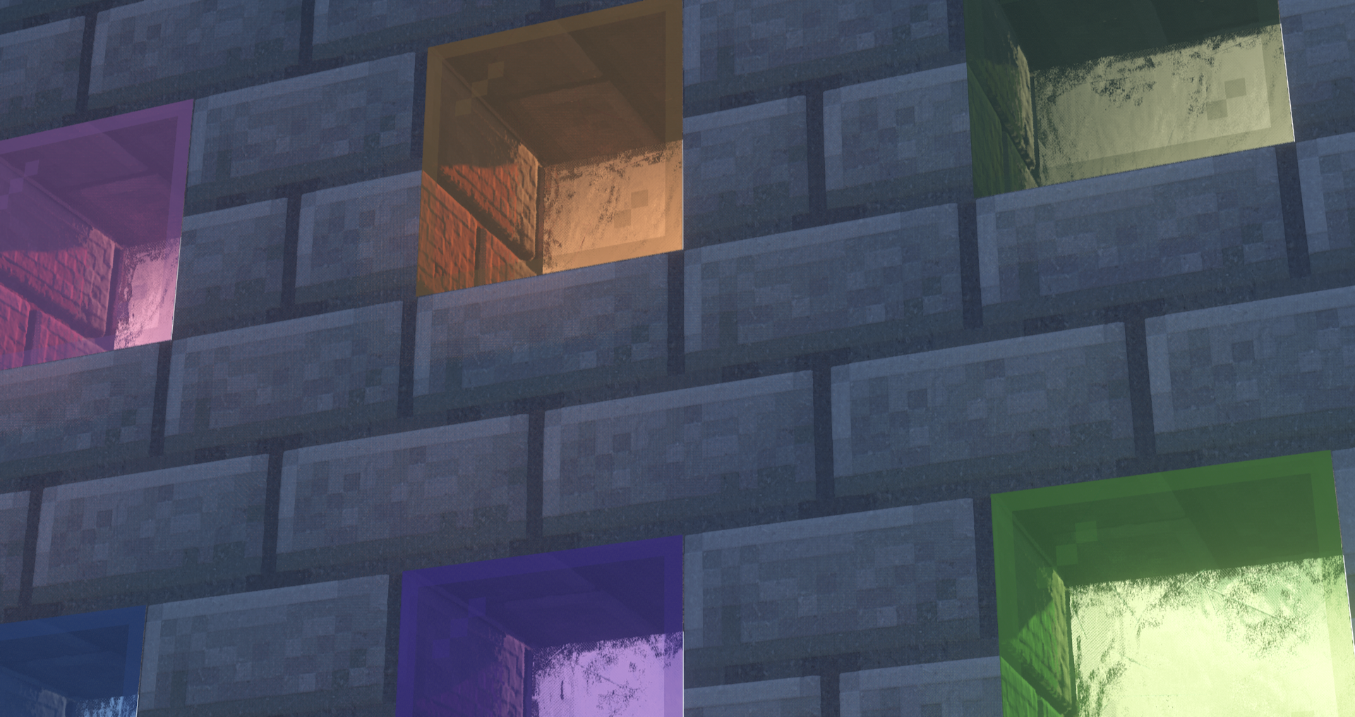 I came up with a design I found satisfactory for the stained glass blocks. I’ve yet to design the panes but they’ll look pretty similar.