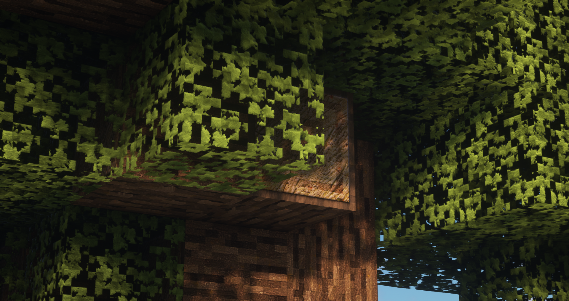 As most of you requested on the ShaderLabs Discord, I started toying with leaves. I came up with various ideas, but the most problematic constraint is to keep a vanilla look as much as possible. Meaning I should keep the overall silhouette and lightness/contrast/hue of the original block while adding meaningful details. It’s even more complicated with openwork blocks with not well-defined edges such as leaves. Here’s my take at it: