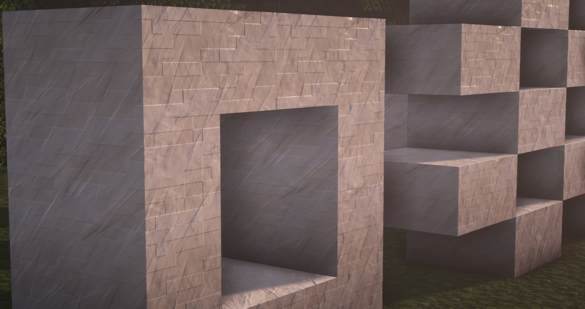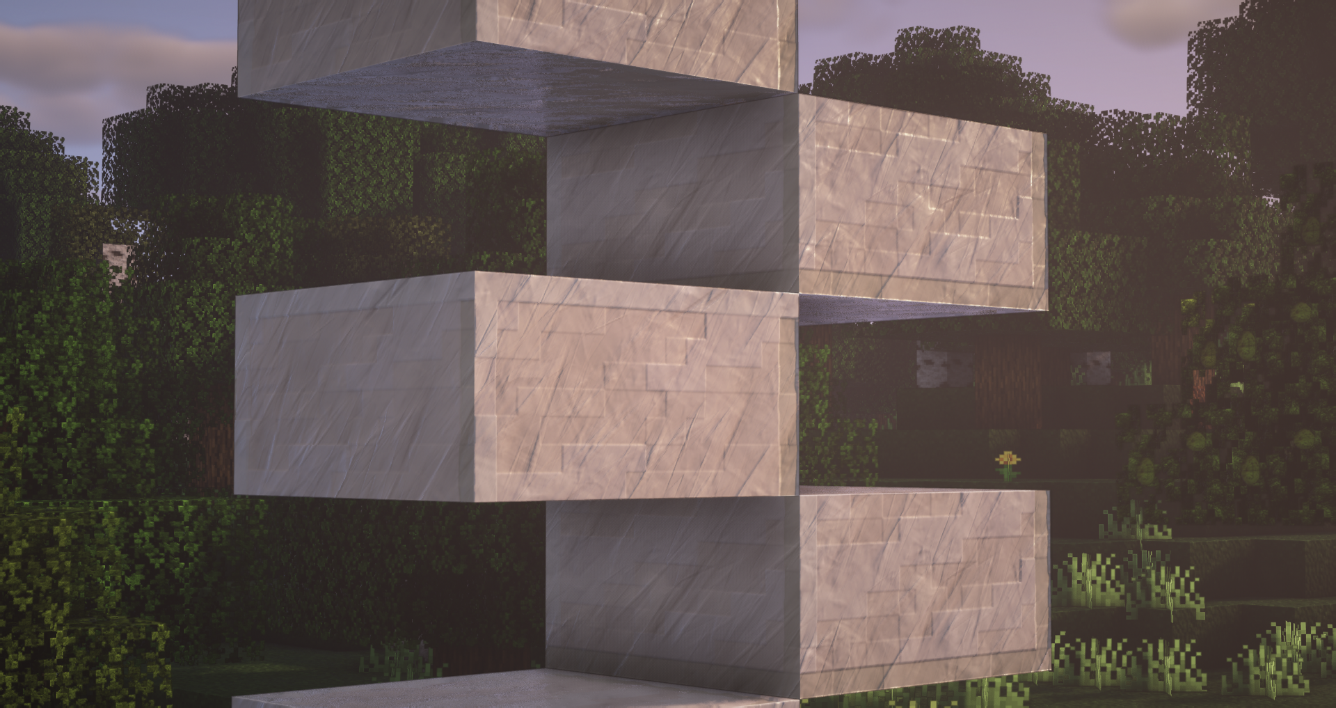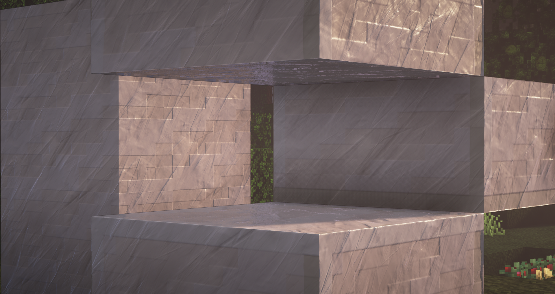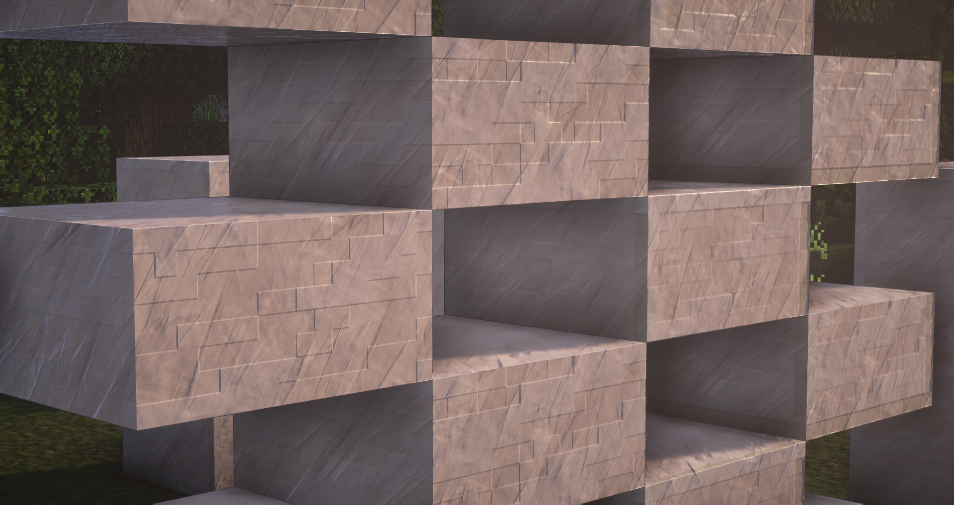 You asked for it, here it is ! All quartz variants (smooth, block, pillar, chiseled) have been designed. Here are a couple of screenshots using BSL Shader illustrating the various configurations where quartz can be used (stairs, slabs, …)