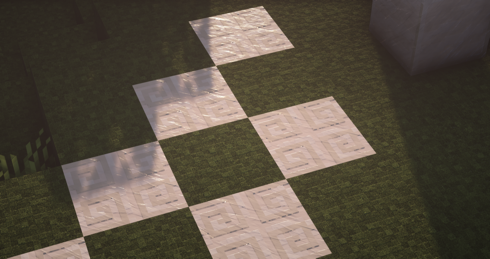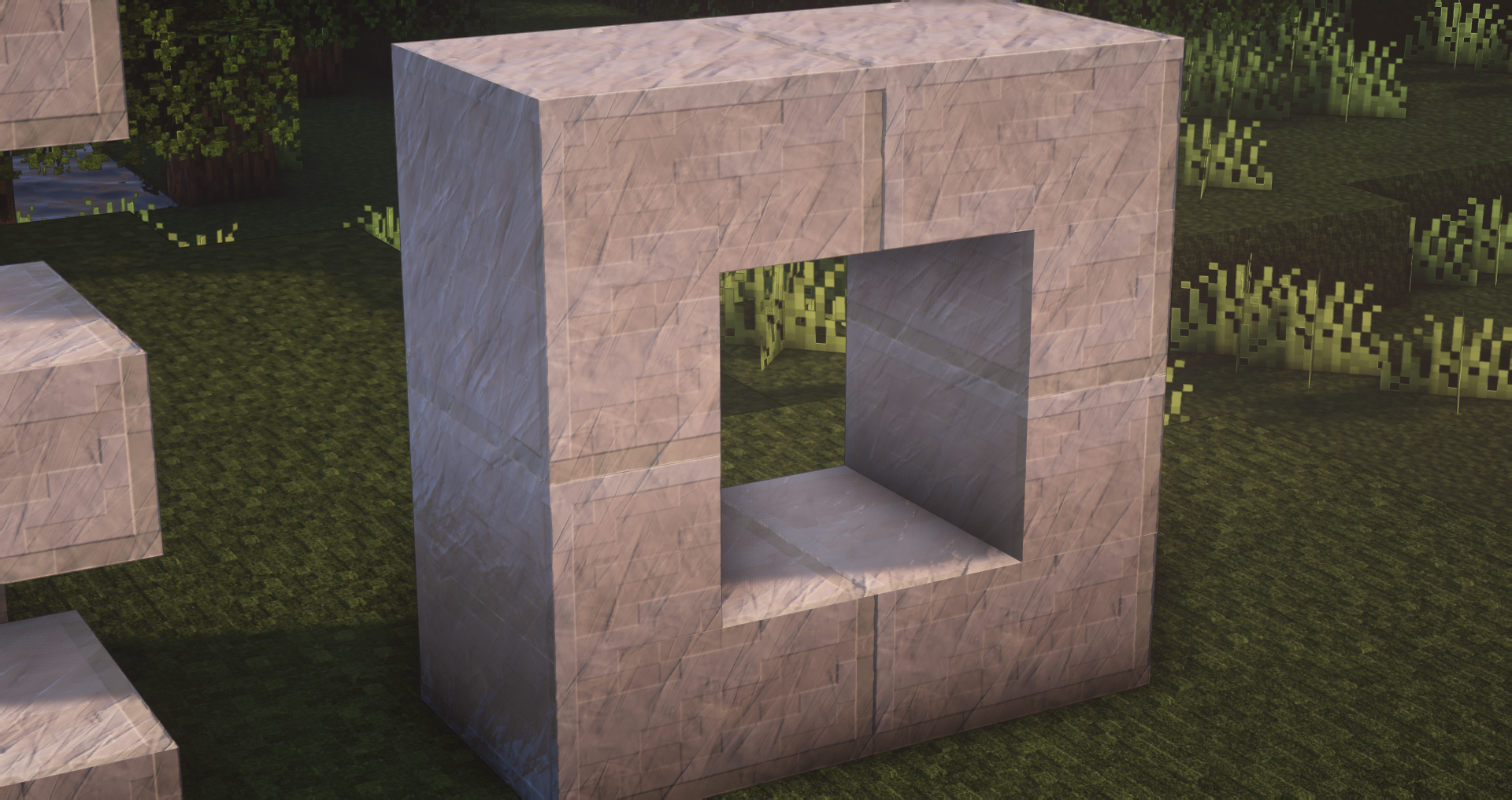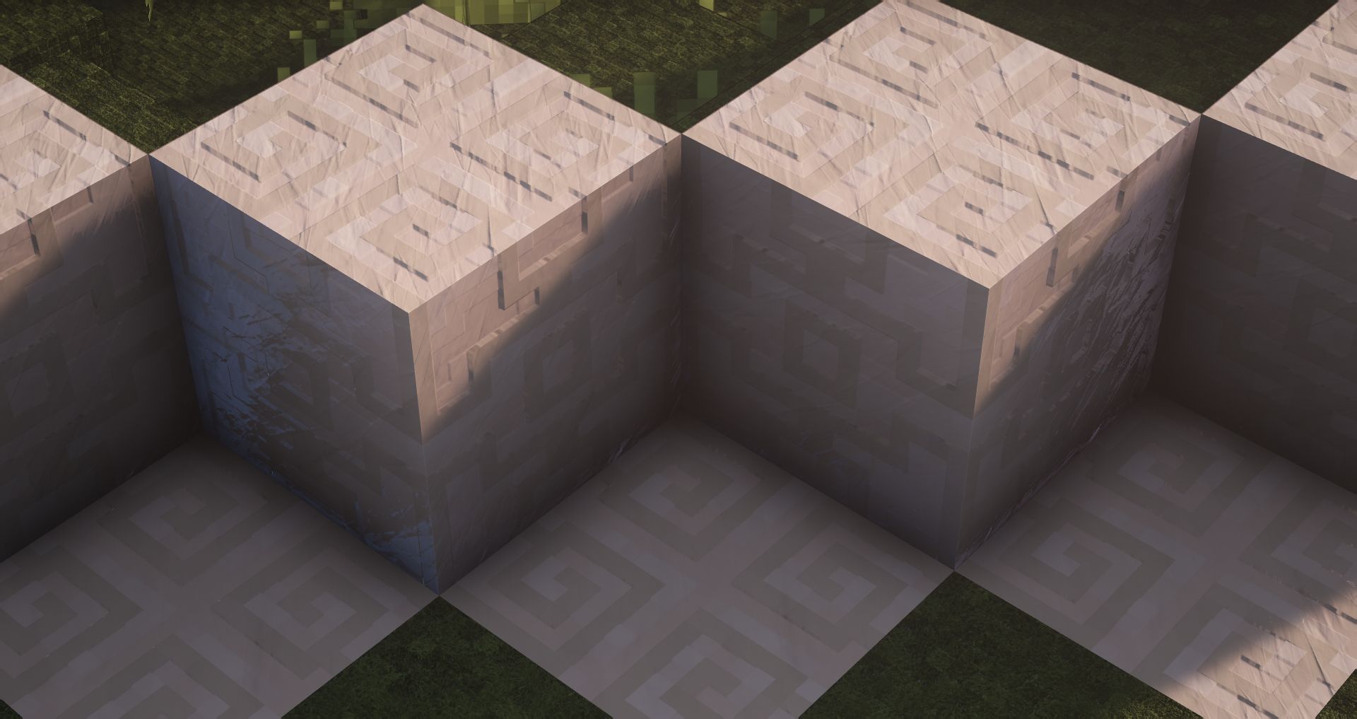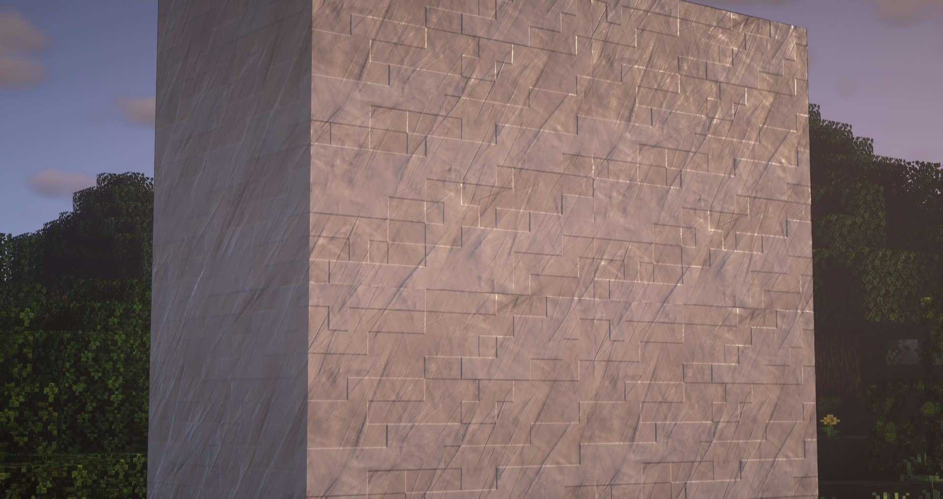 You asked for it, here it is ! All quartz variants (smooth, block, pillar, chiseled) have been designed. Here are a couple of screenshots using BSL Shader illustrating the various configurations where quartz can be used (stairs, slabs, …)