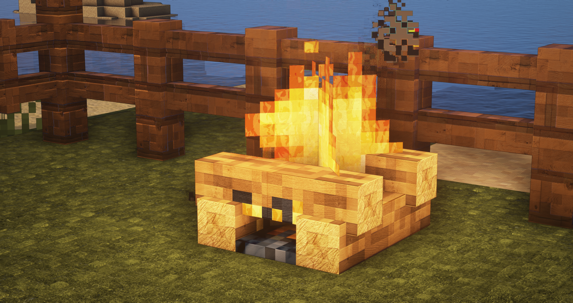 Today I designed the campfire block. As it’s an animated block, please be aware that such blocks can have a huge impact on FPS. If you notice a significant dip in your FPS please check options / video settings / animations and disable terrain animations. Check then if your FPS gets better. Anyway, here is the campfire: