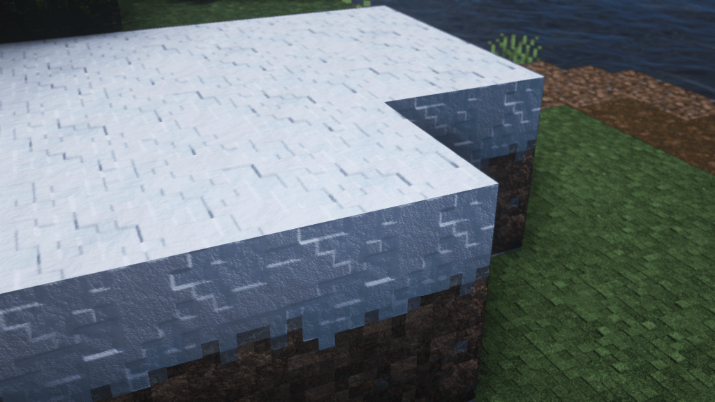 Snow was still using an old, non-scalable texture which I replaced with a home made, procedurally-generated variant. It is scalable up to 2K and fits the vanilla theme better than the old one. Normals have also been reworked so they look a bit less intense & more natural.