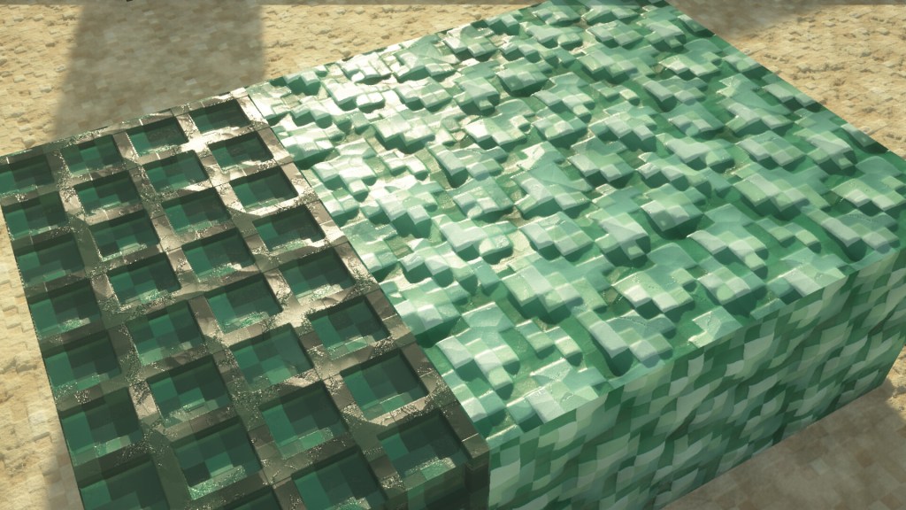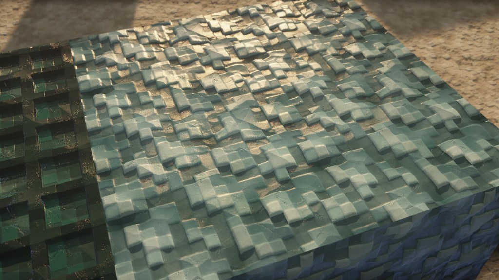 Here are the prismarine blocks, they keep the animated color loop (I decided to leave the interpolation on for this block, don’t hesitate to give feedback if you notice big FPS drops) and use roughly the same theme as the previously designed dark prismarine blocks.