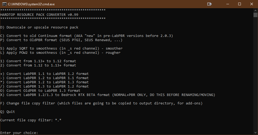 - There you can select which option you’d like to convert to. In this example I’ll use the 1.12 converter. Type 1 then press enter.