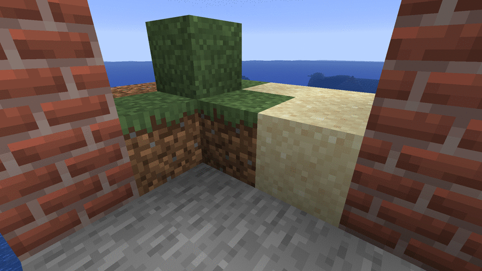 Here are two screenshots, the first being original Minecraft, the second being my experimental pack. I don’t know what I could do with that, but maybe someday I’ll make more blocks for it.