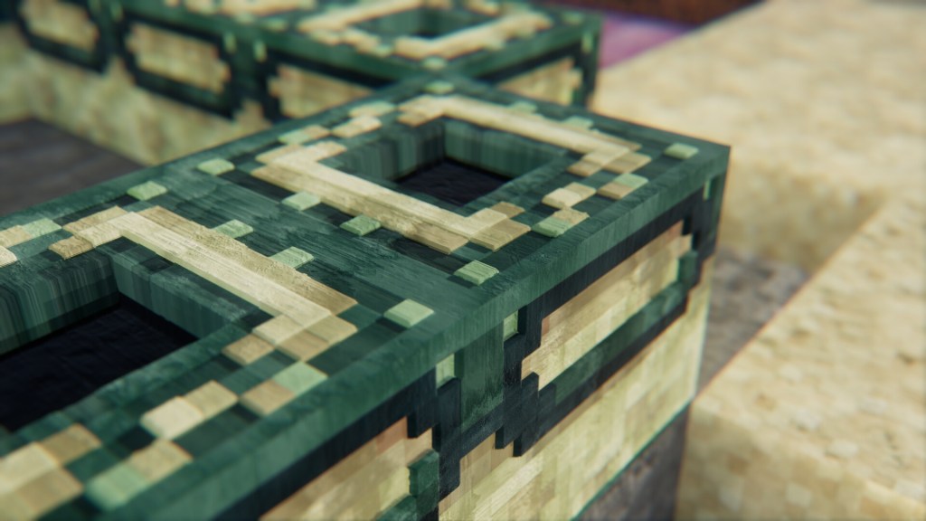 So I did the remaining end block (I think) and I think it turned out pretty great. The eye just feels right, most shaders look really nice on the eye details and the portal structure itself is pretty consistent with most end blocks… Here’s what I’m talking about :