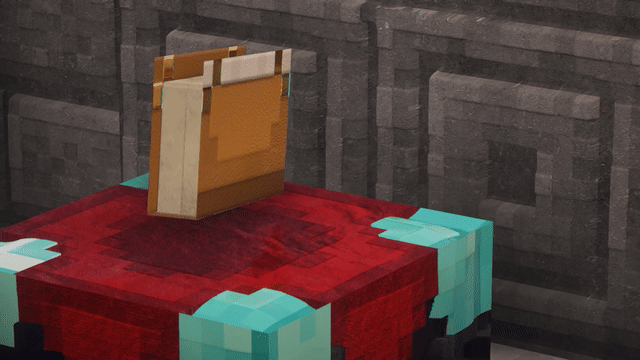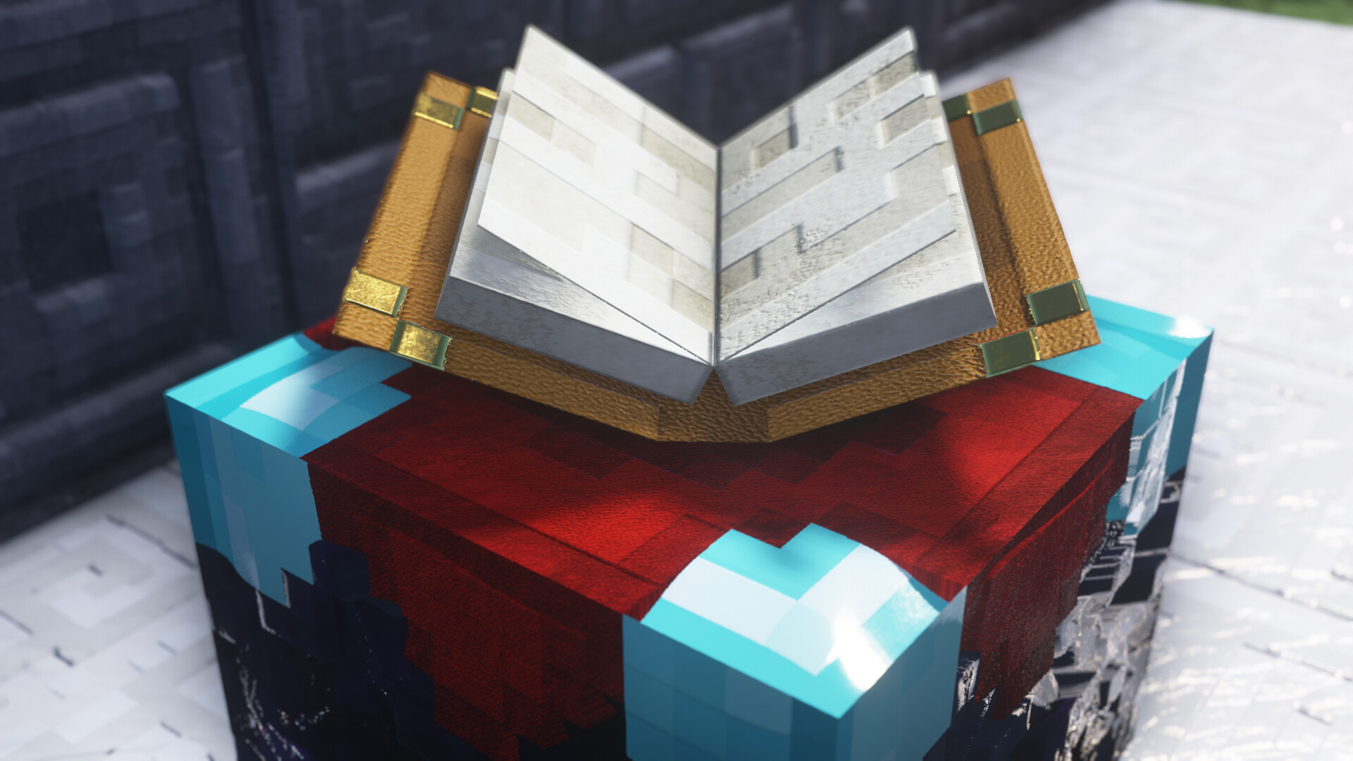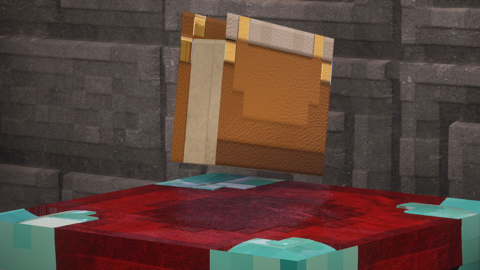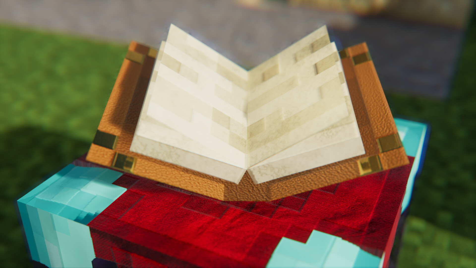 I used leather textures for the book cover, a paper texture for the pages and gold for the metallic inserts on the book. All PBR compliant of course (with SSS on the paper for the shaders that would support SSS on entities…)