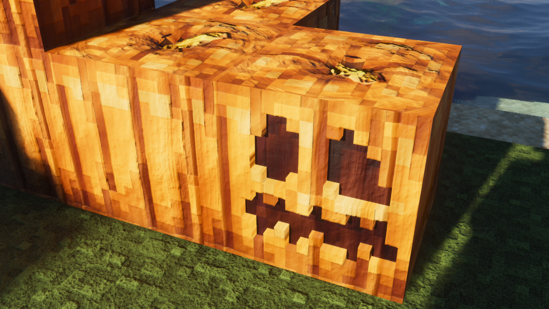 In the meantime I also reworked the pumpkin-related blocks to improve their albedo details, normals&height consistency and overall faithfulness.