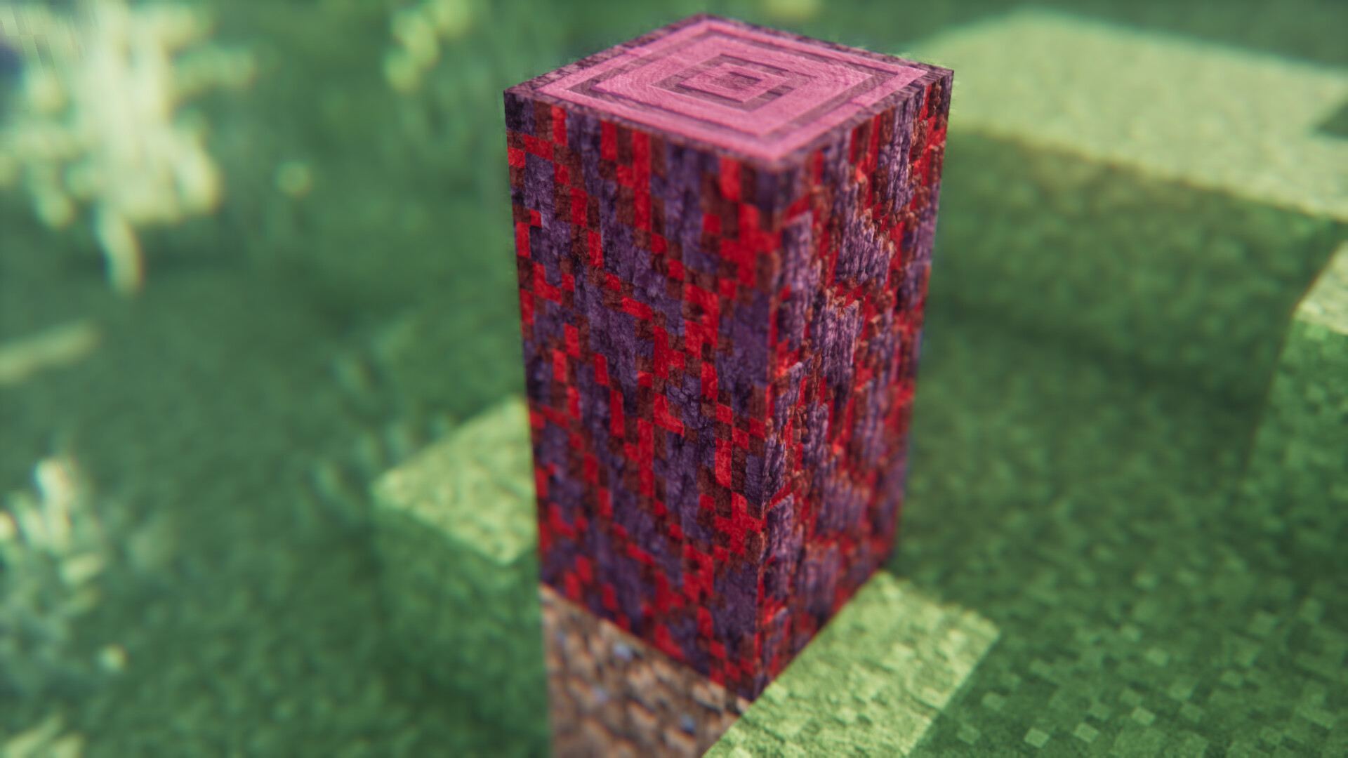 Next block I did was related to crimson wood. Here are crimson stems and the top stump. I decided to use the red lines as intrusion pattern as well as making them slightly emissive. That turned out pretty good in my opinion, but as with most blocks they might change yet somewhere along the whole Vanillaccurate lifecycle.