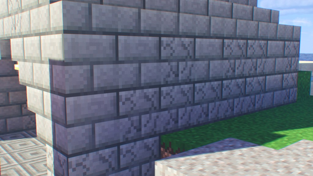 So far I designed some basic blocks : oak planks, logs & log tops, stone bricks (also cracked, chiseled, mossy), cobblestone (also mossy), bricks, dirt, grass, sand, iron block.