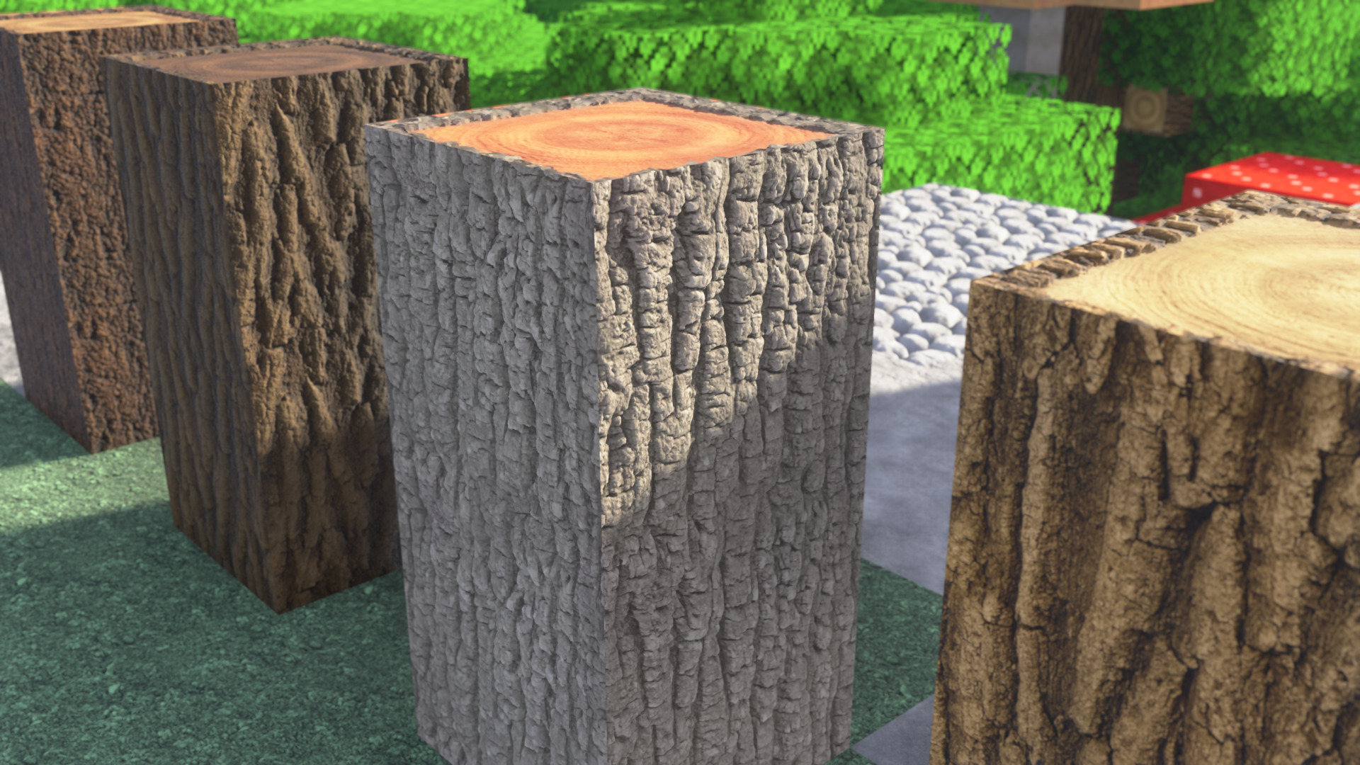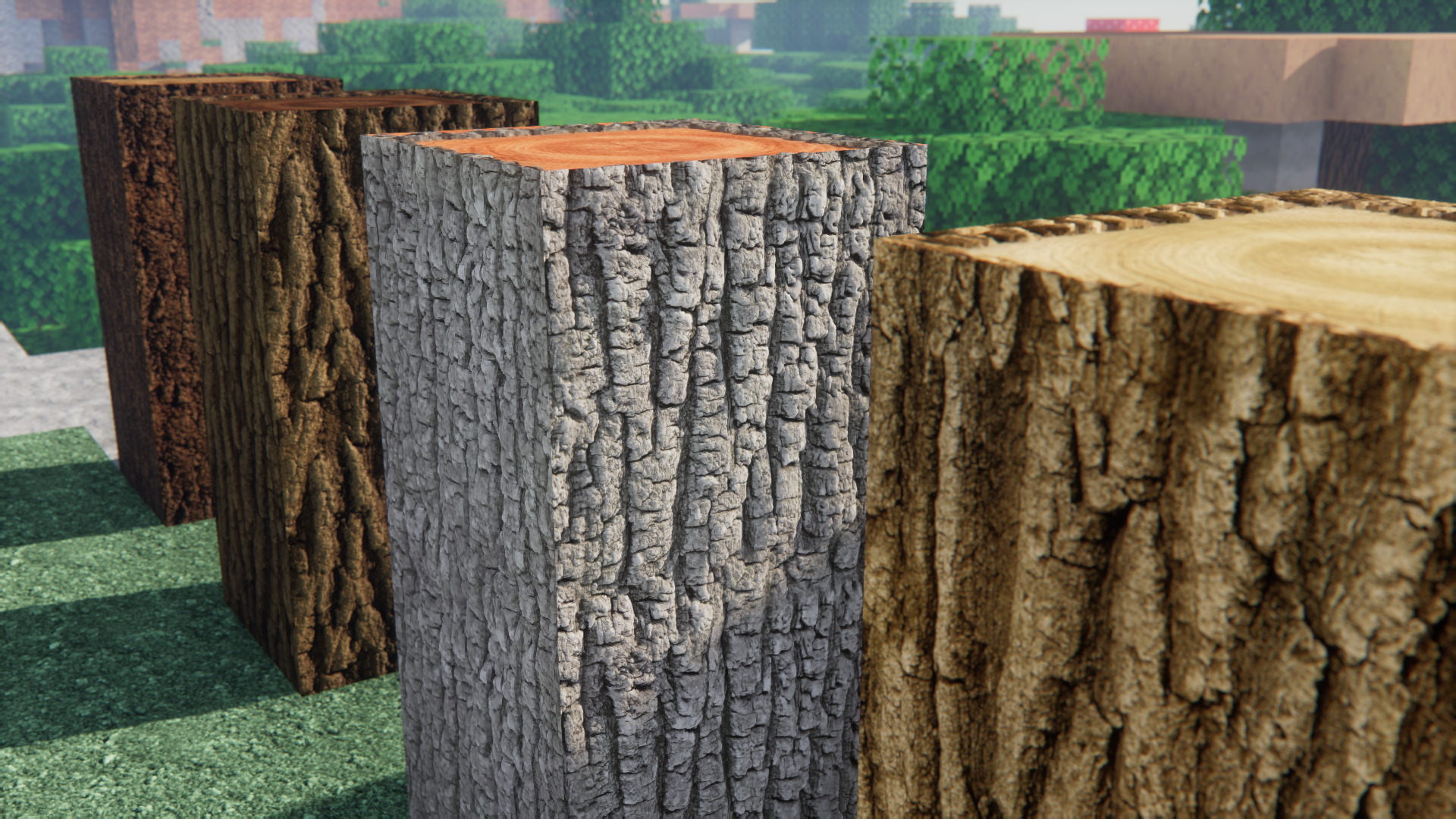 I added several log blocks, as well as quartz variants. I also designed the spruce door, rails, barrels, smooth stone, red sandstone.