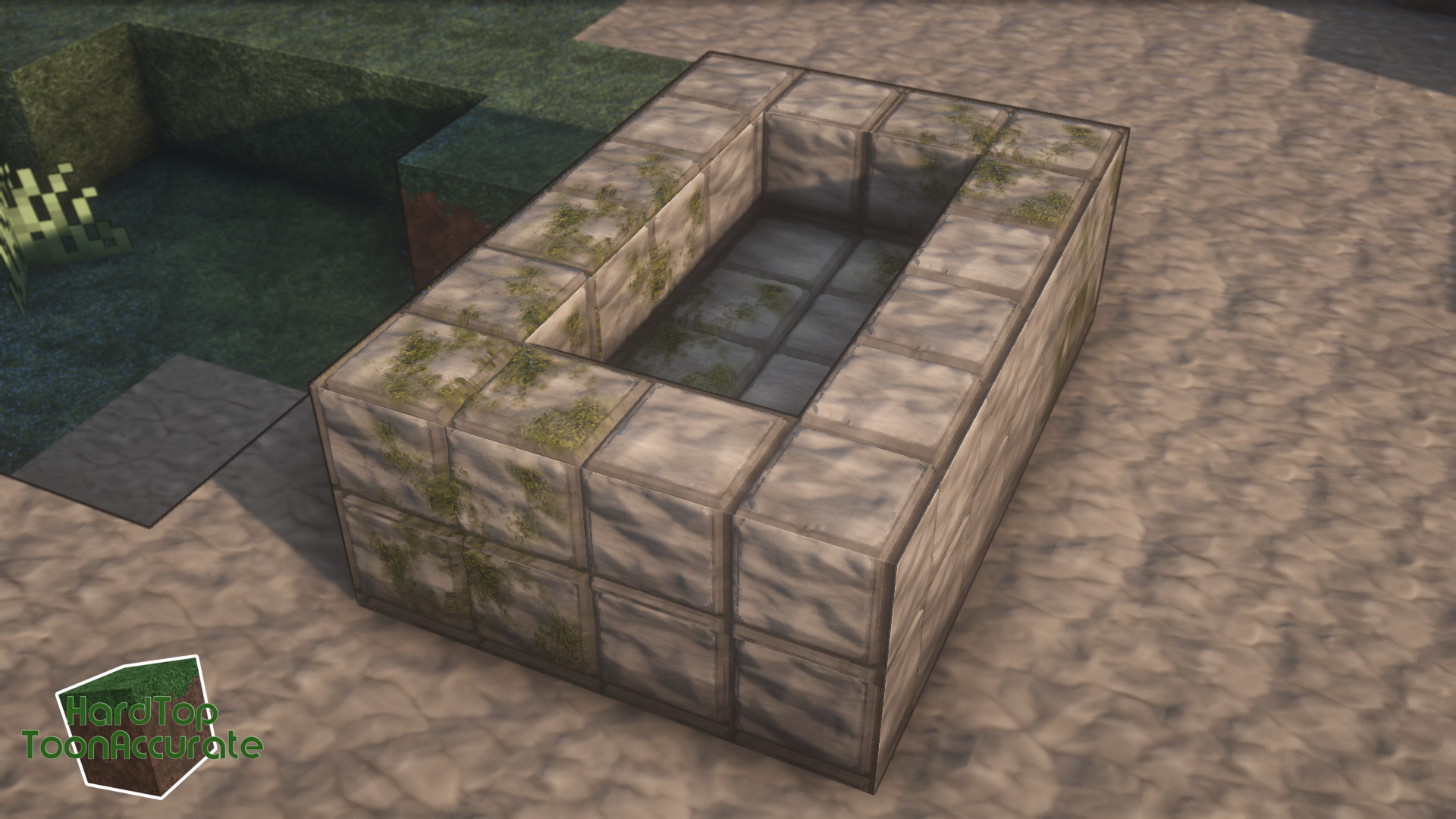 The stone bricks related blocks were improved overall, having a darker albedo and some added faceted-like features. I added custom models to avoid tiling issues on stairs blocks, as you can see on the 4th and 5th screenshots.