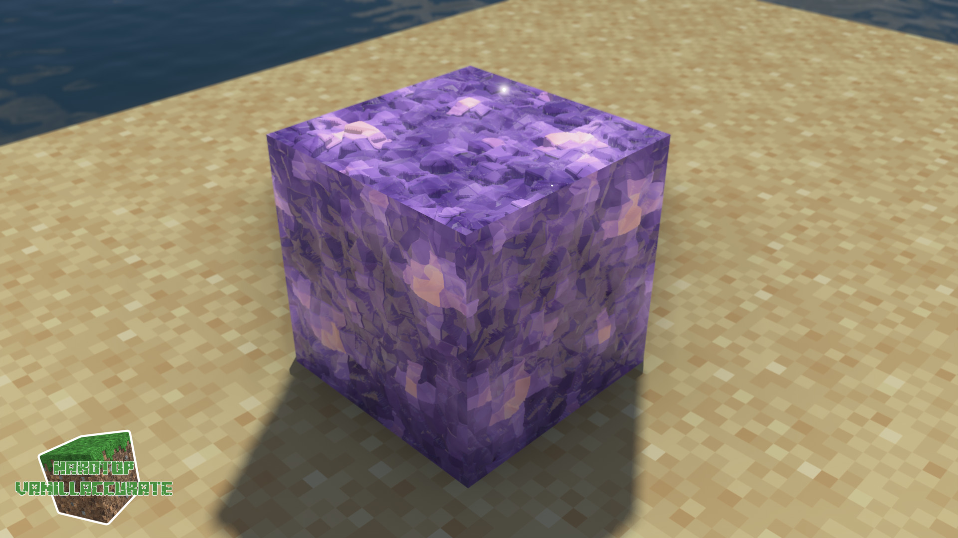Here are renders and in-game screenshots of the amethyst block and the various weathered stages of the copper block. The shaders I used here alongside the Substance renders are Continuum 2.1 alpha build 12, Spectrum, and Kappa v3.0 E12: