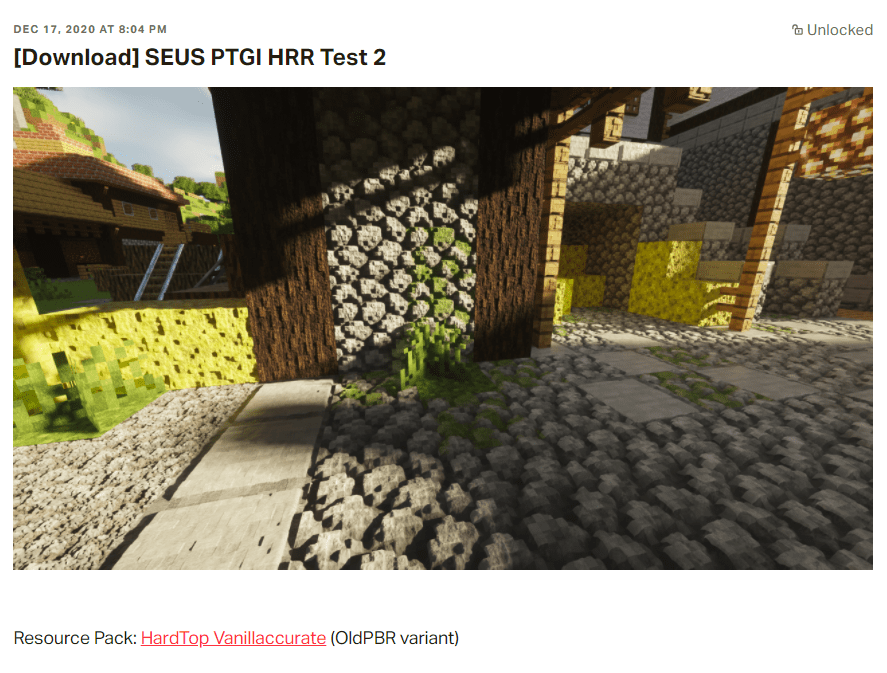 I had the great honor to see Vanillaccurate featured as the suggested pack for Sonic Ether’s new PTGI version that now supports POM !
