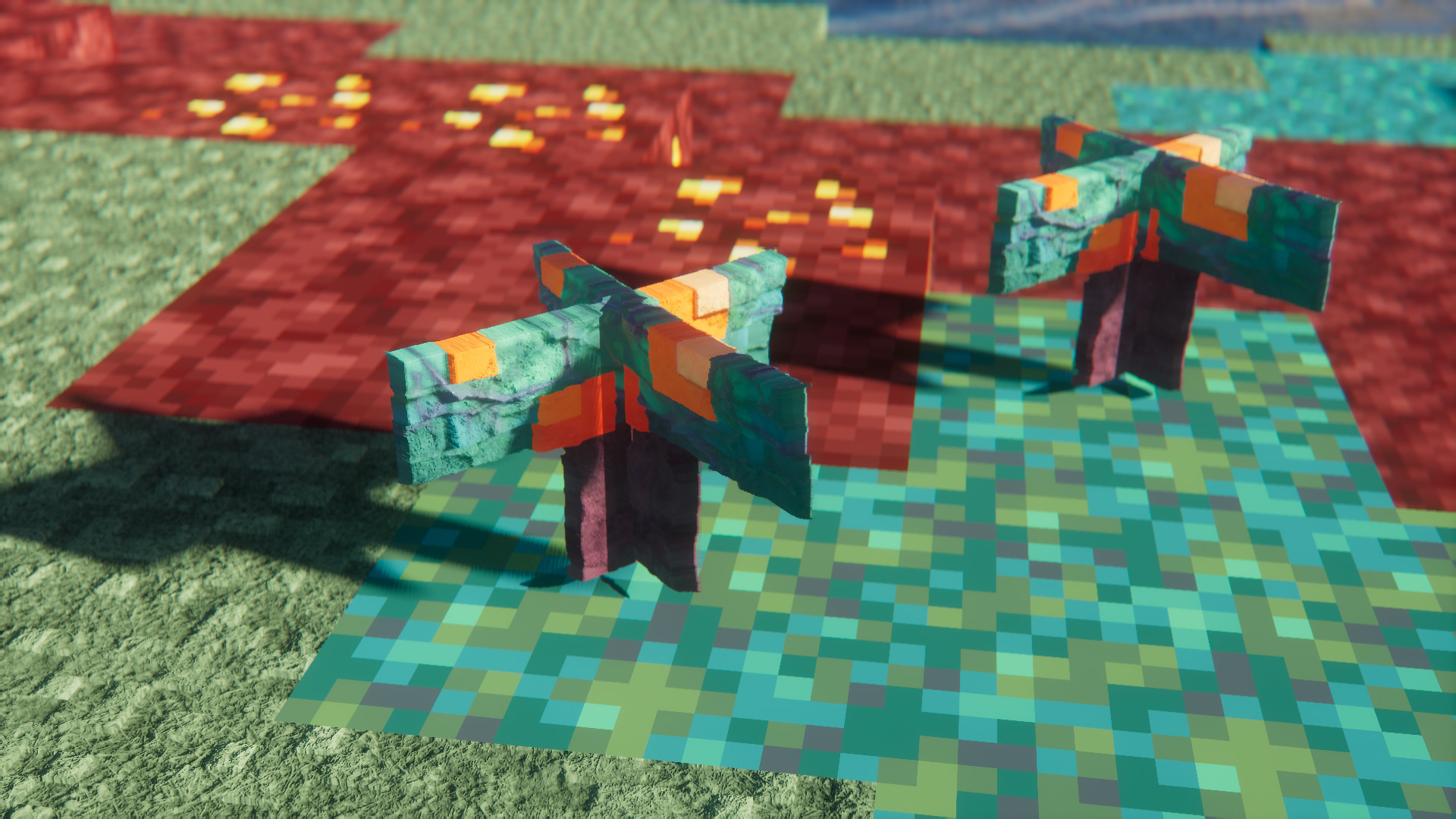 Besides glass, I also worked on some emissive Nether-related blocks, namely Crimson stems, Warped stems, Crimson fungi and Warped fungi. I also added some POM depth to fungi the same way I did with flowers and leaves the past few days.