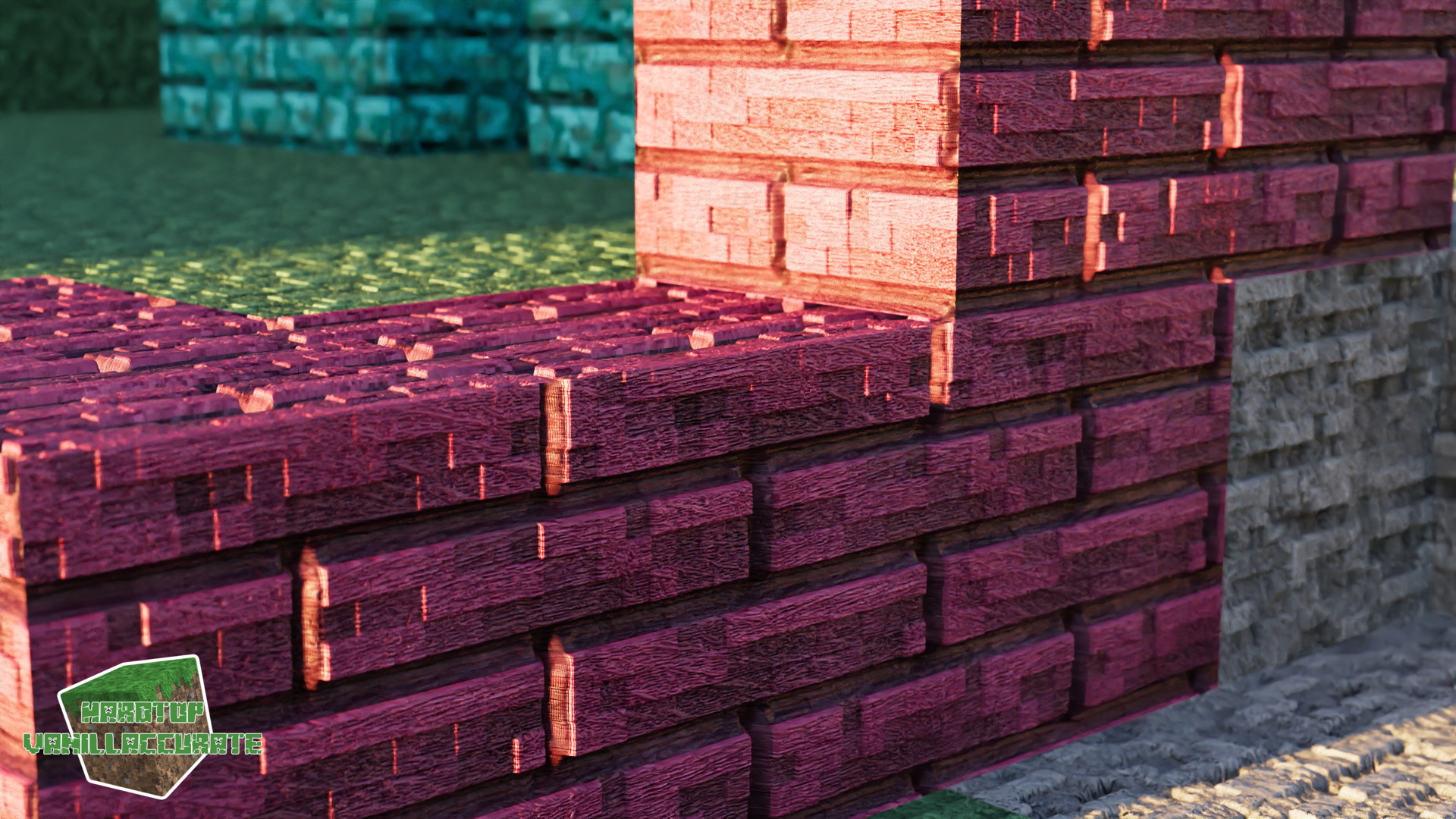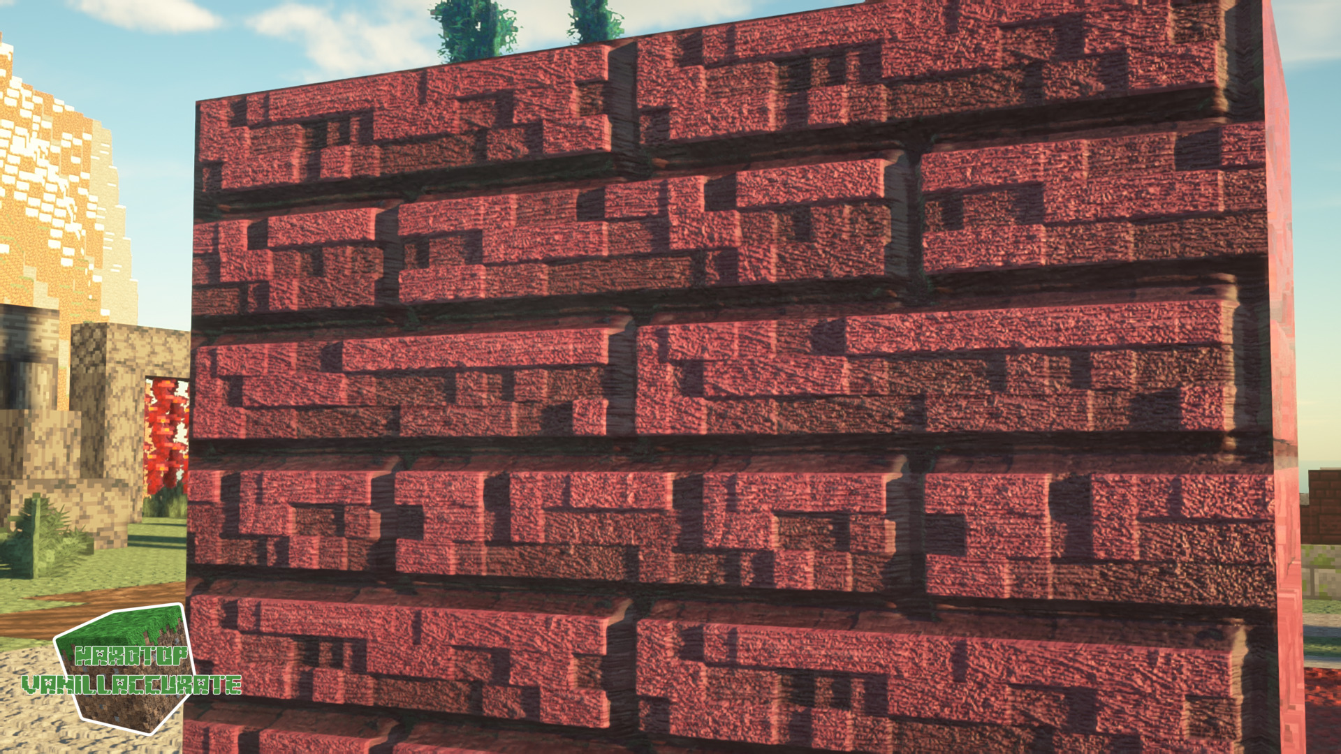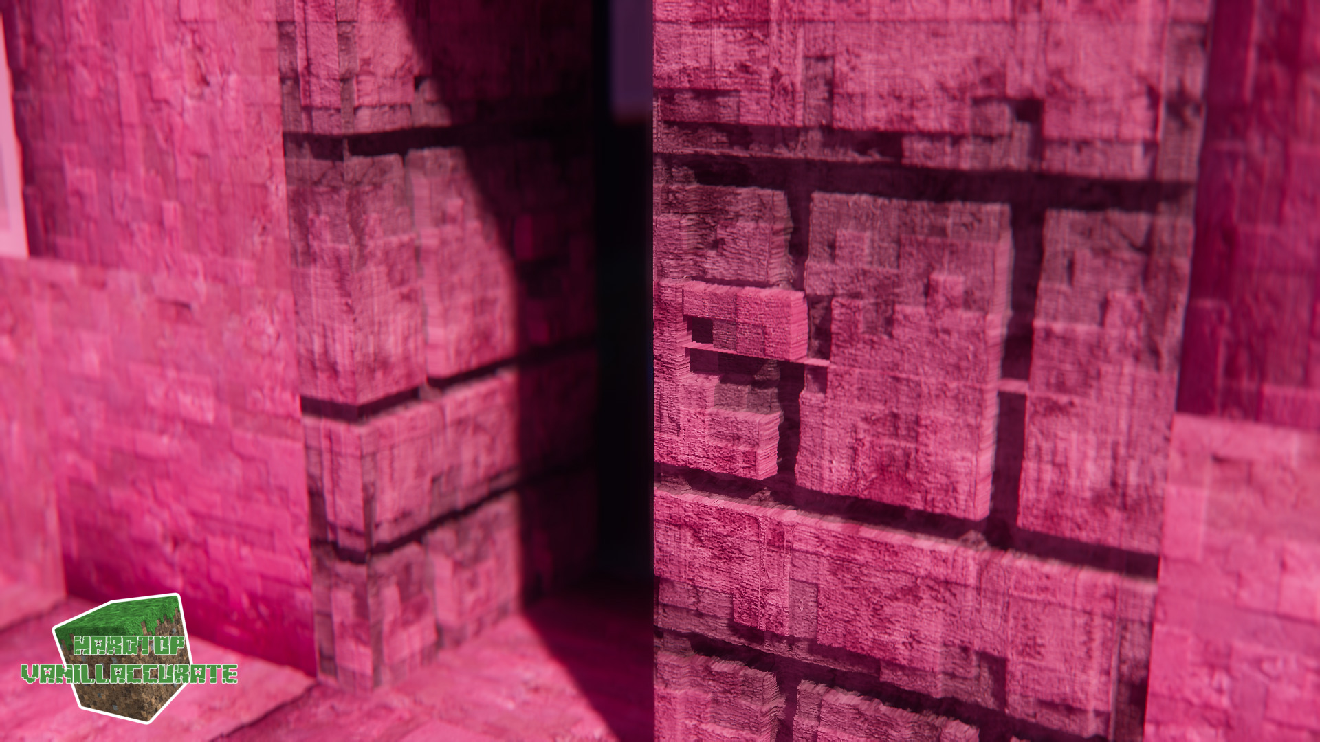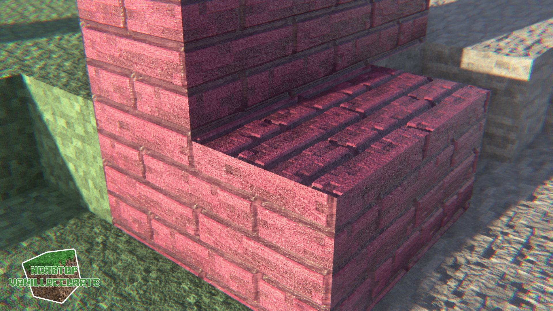 So as I mentioned I also did a major overhaul on the crimson POM and normals details. Albedo remained pretty much the same but the extra details I added in the normals and heightmap as well as the ambient occlusion map really improves the overall rendering of the block. I might tinker with those a bit further to find an acceptable way of minimizing the POM seams on the dual-height blocks but it already looks pretty much how I want it to.
