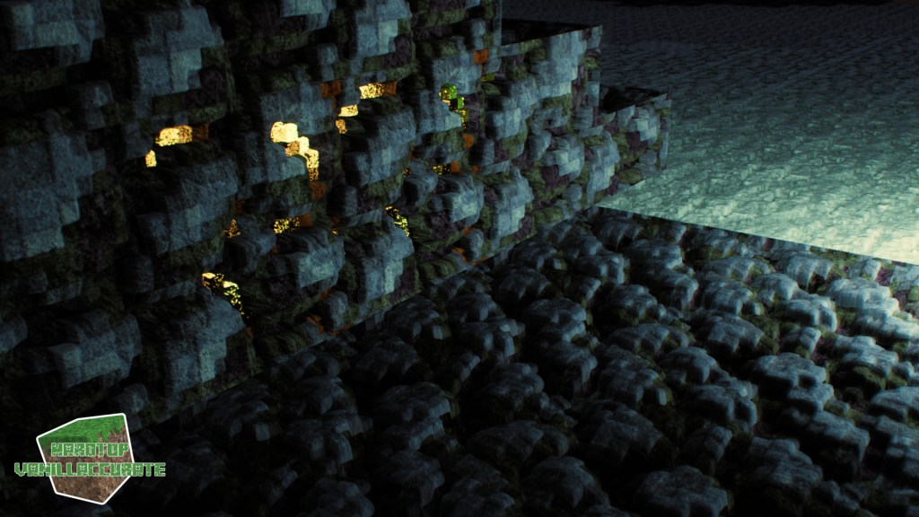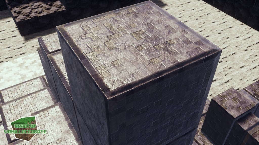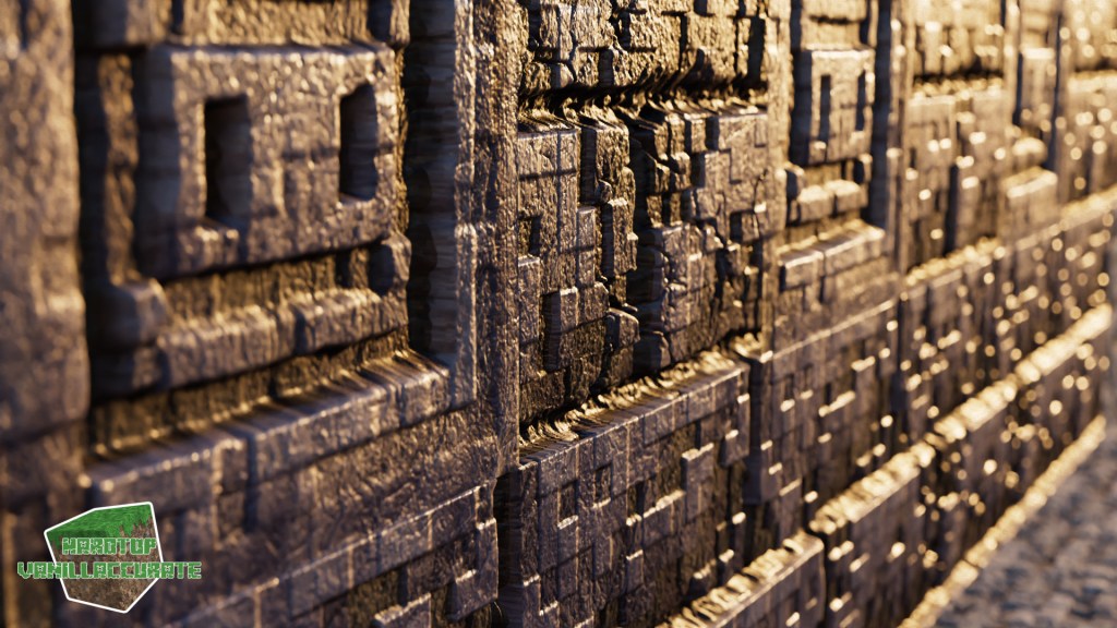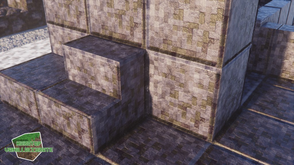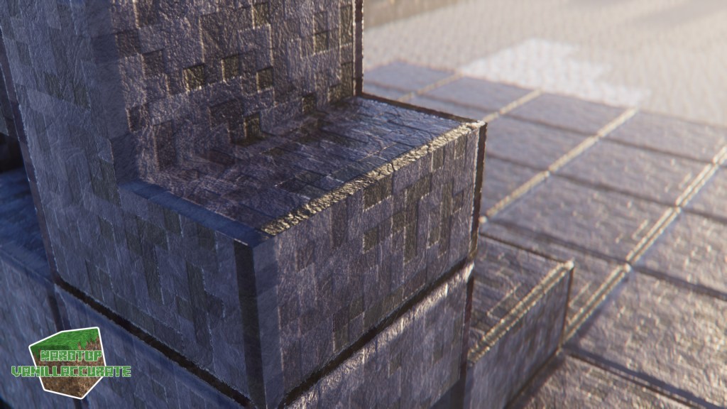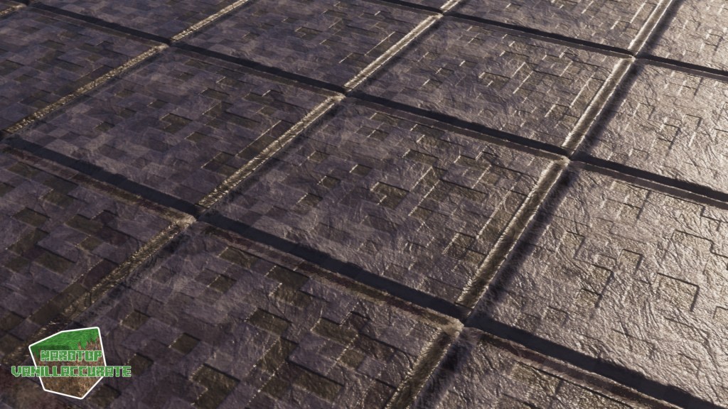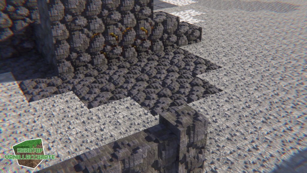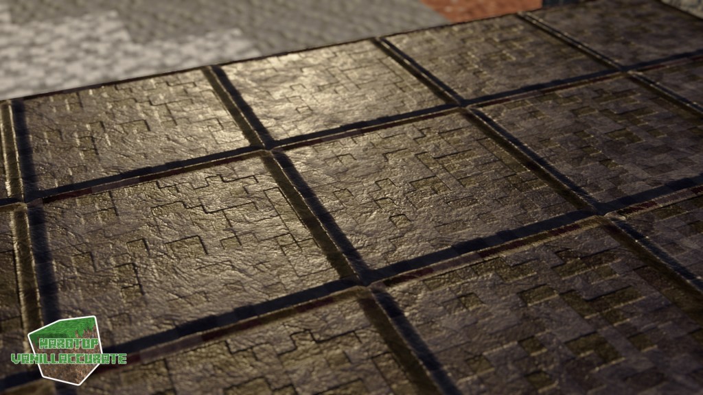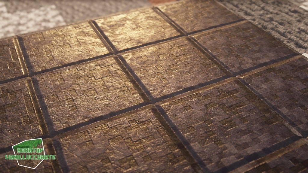 As can be seen in some screenshots I increased the smoothness on gold flakes in the gilded blackstone texture. I tried keeping the heightmap as high as possible to minimize artifacts while keeping enough depth.