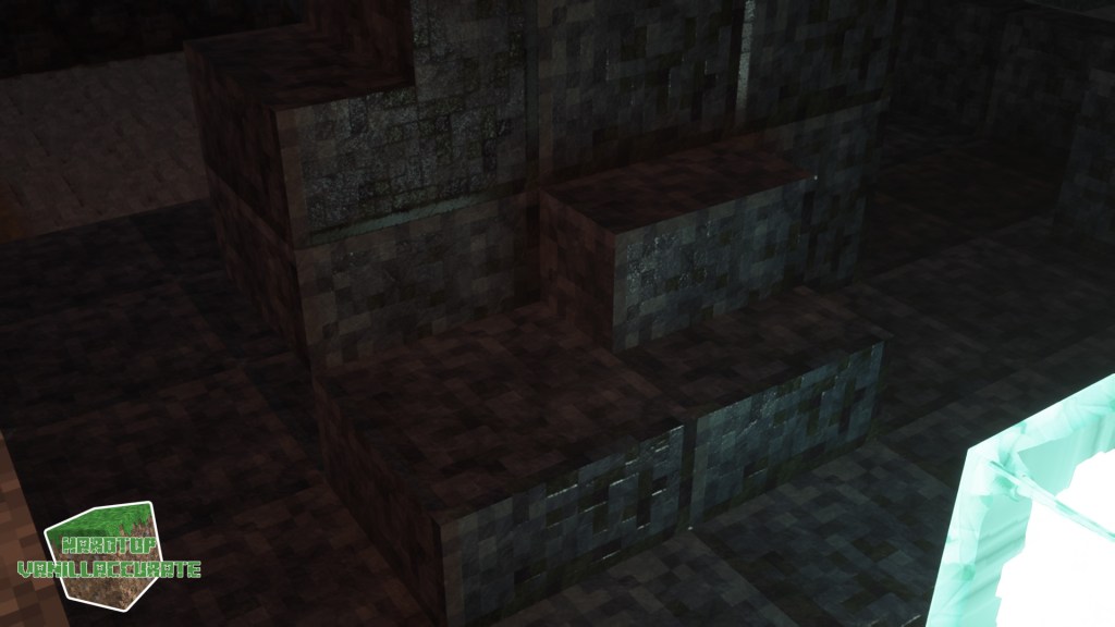 Stairs also work pretty well with the polished blackstone revamp. I added some morning-light reflections on polished blackstone bricks (regular, chiseled, cracked), as well as block light with SSPT (Chocapic, Kappa, Loop) or full PT (Chronos, KappaPT, SEUS PTGI, MollyVX)
