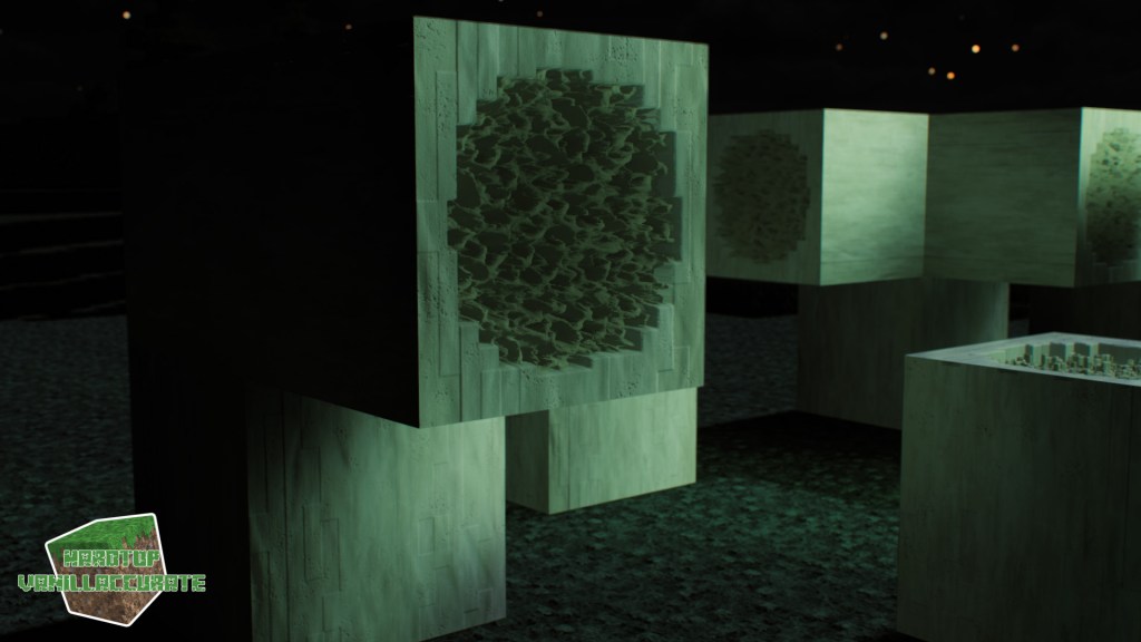 Next thing I wanted to see improved was the polished blackstone group, as I already worked on improving the “rough” counterpart to these blocks. I made edges much more angled and sharp for the regular polished block, and improved the edges like I did for regular stone bricks in the case of polished blackstone bricks.