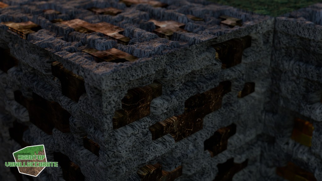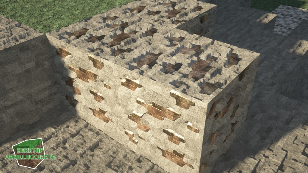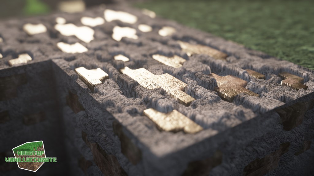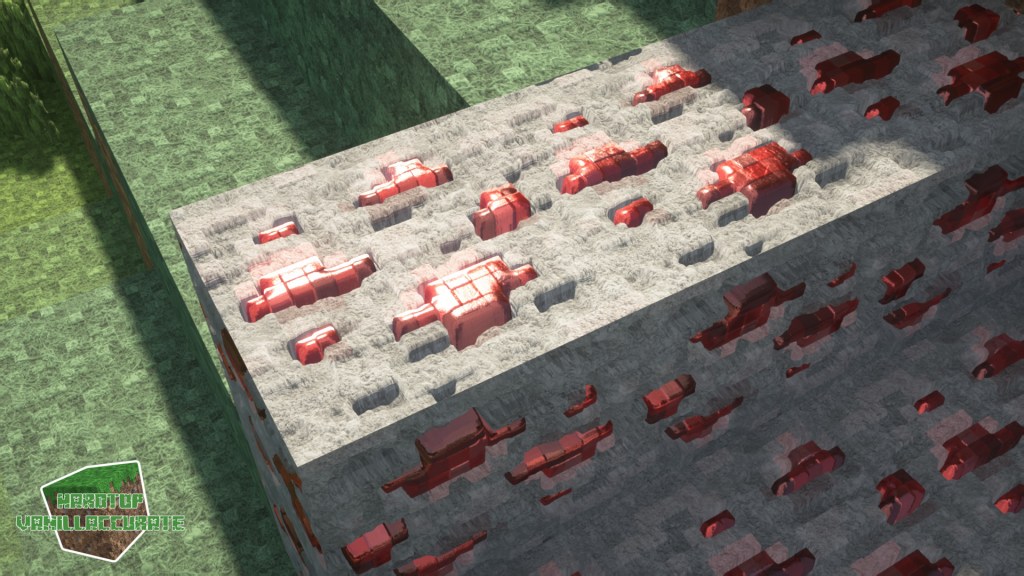 Here are some day shots with various shaders. Notice the golden sheen to redstone ore with some shaders that support tinted metals like Continuum 2.1, BSL, or Kappa.