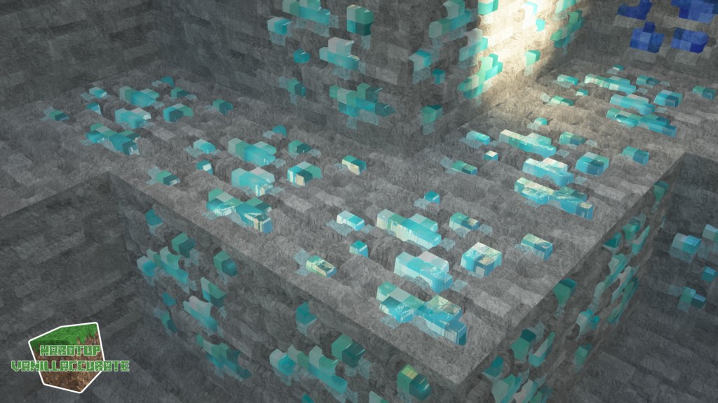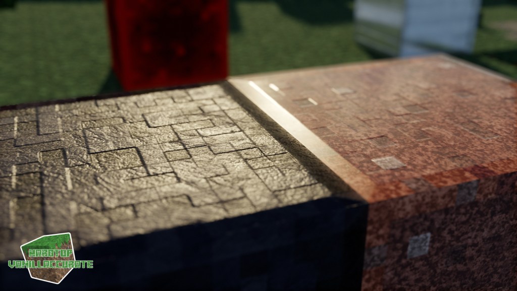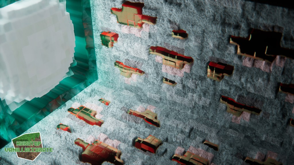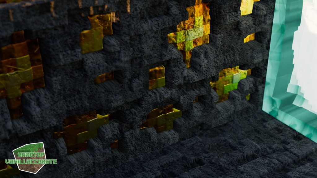 You can clearly see redstone can behave differently from shader to shader, as well as iron and gold. This has to do with HCM or hardcoded metals that can use a specific color for specular reflections while either keeping their regular albedo (even though metals shouldn’t have such, but for gameplay’s sake and to overcome some issues some shader devs decided to use some albedo as a fallback value on metals) or even overriding the albedo entirely with the hardcoded metal’s intended color.