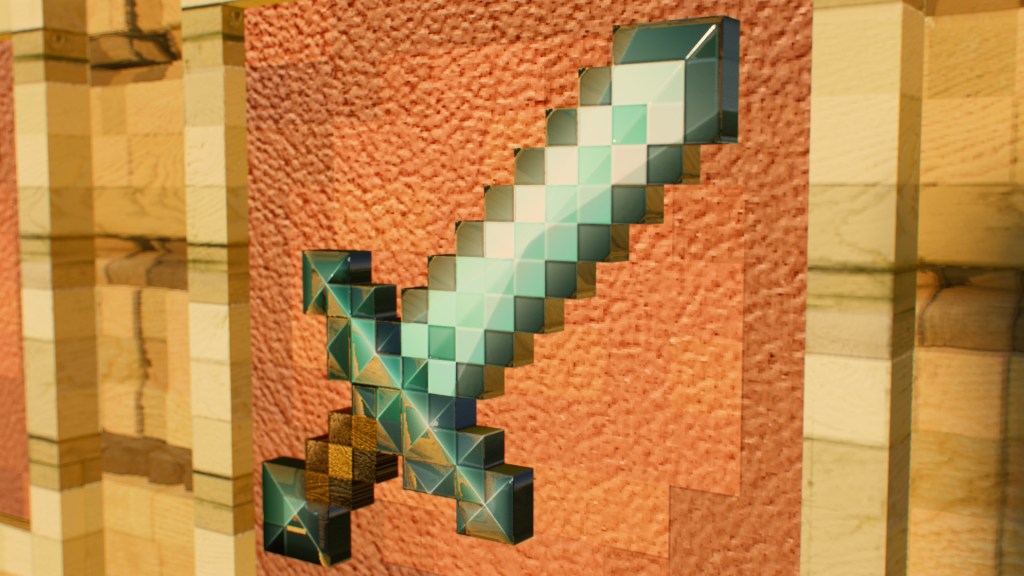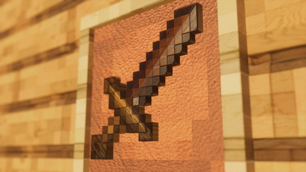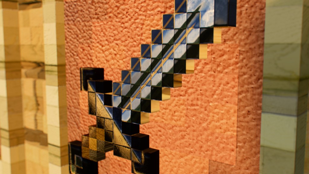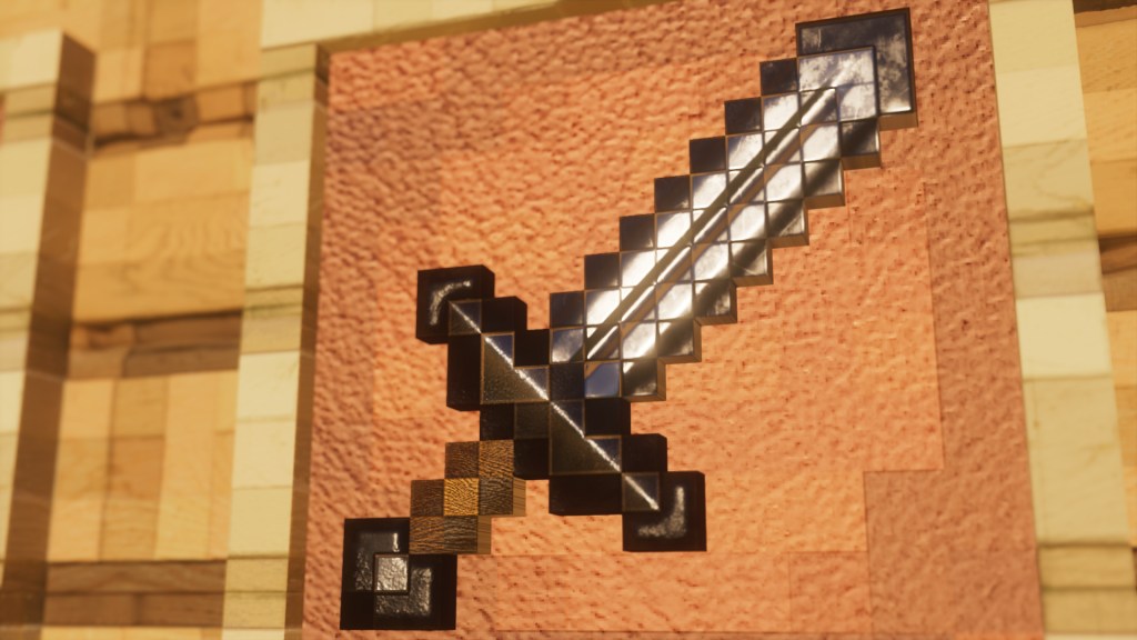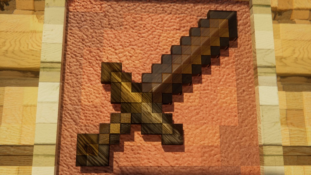 Largely based on the iron one, it’s still different in that it has much less rust and oxydization damage. It’s showing scratches though. I also used LabPBR hardcoded metals here, namely gold gold for the blade, and albedo-metal for the other metallic parts.