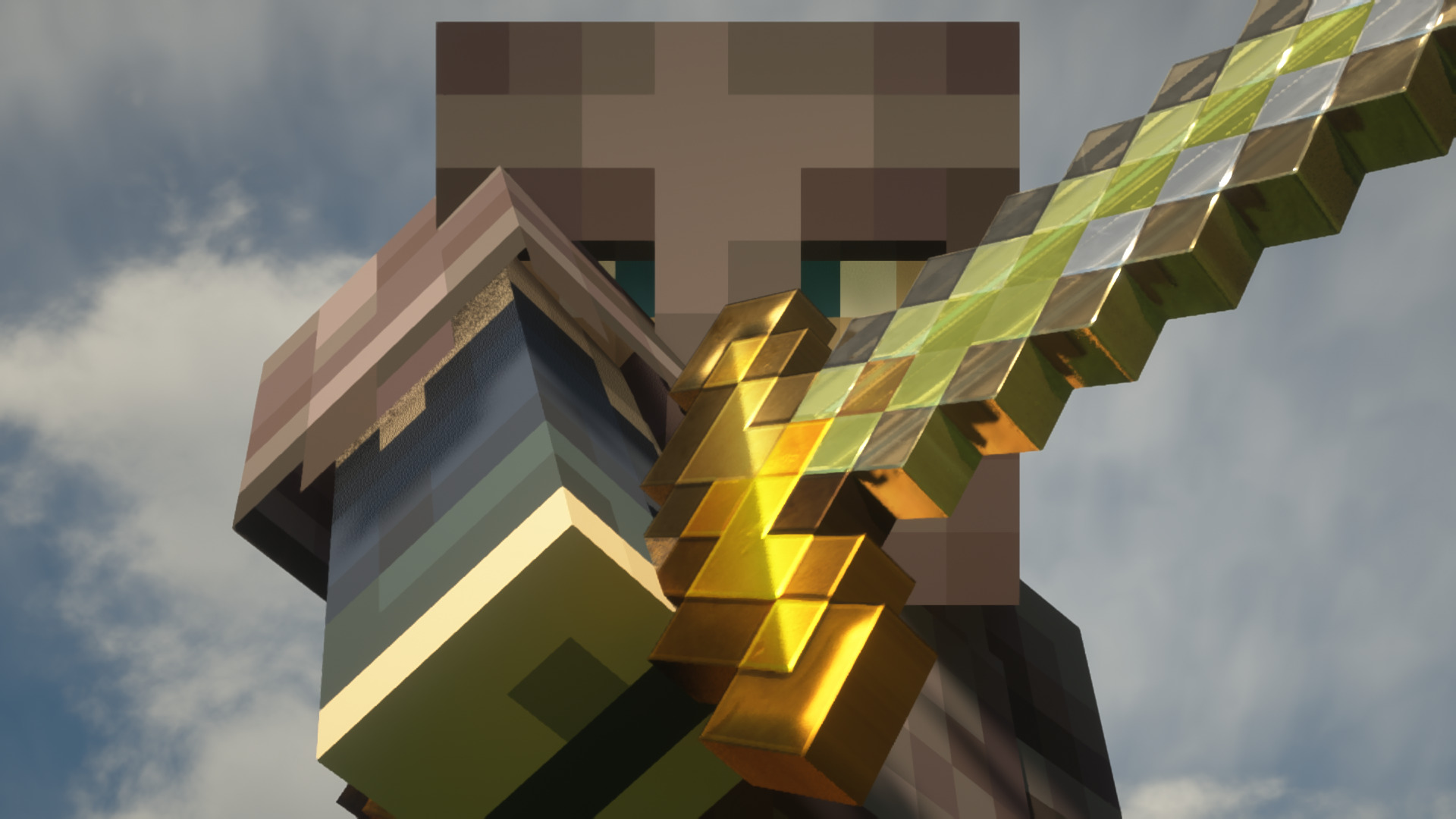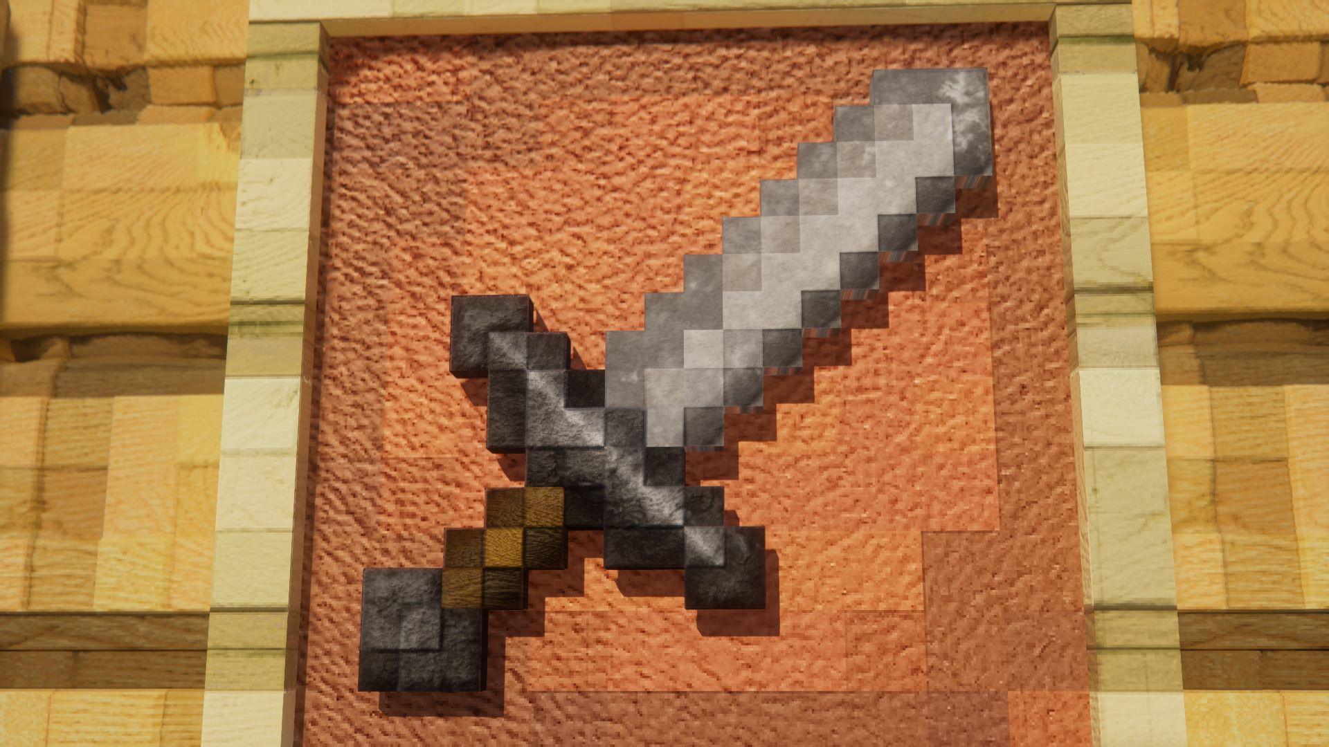 Largely based on the iron one, it’s still different in that it has much less rust and oxydization damage. It’s showing scratches though. I also used LabPBR hardcoded metals here, namely gold gold for the blade, and albedo-metal for the other metallic parts.