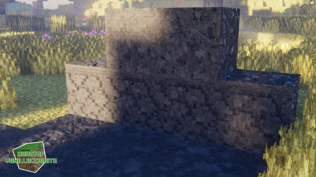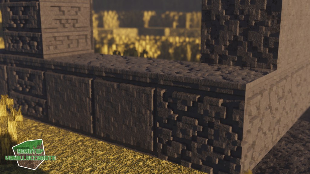 Notice how ambient occlusion gives depth to the white sandstone blocks that are in the shade (Continuum 3rd picture, Kappa 3rd picture), whereas black sandstone blocks facing the sun don’t exhibit such occlusion (Continuum 2nd picture, Kappa 2nd picture).