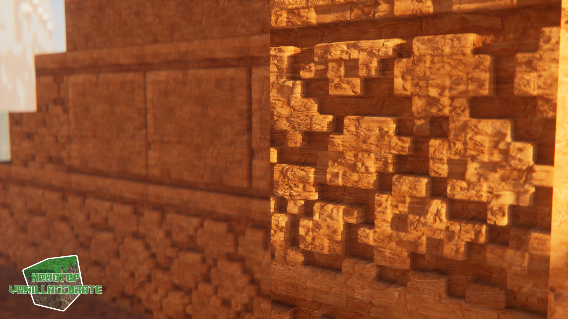 I also adjusted the current red sandstone blocks to add a tad more roundness here, because they looked way too angled/sharp. It’s not a major change, though. Just a smidge of smoothness on the edges. Notice the added AO that’s much more defined now: