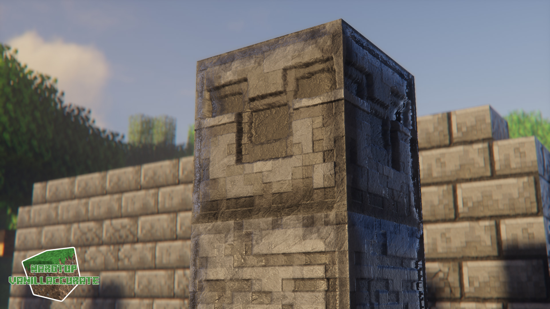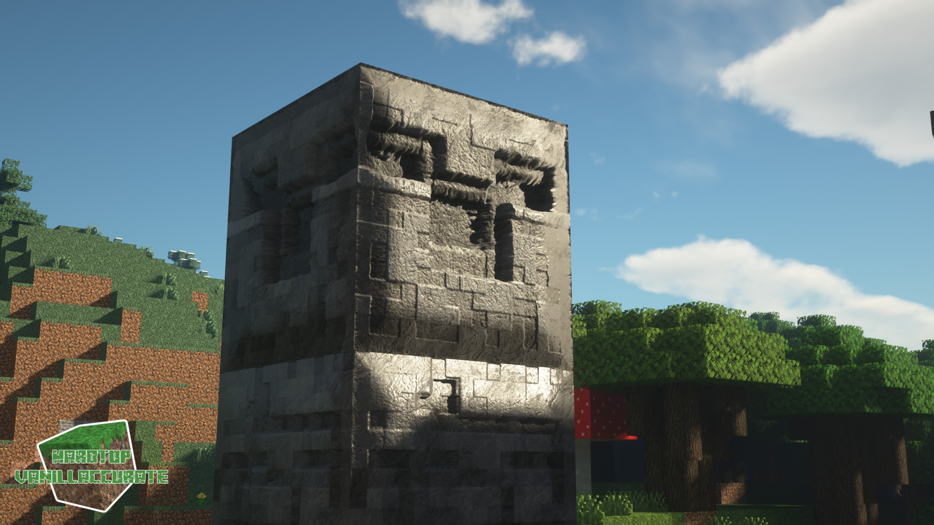 There’s also a new polished variety of deepslate blocks. I added the regular and chiseled polished blocks. The chiseled one has a face on it, much like sandstone has a creeper face and red sandstone a wither shape, polished blackstone has a piglin snout, nether bricks have a wither skeleton skull.